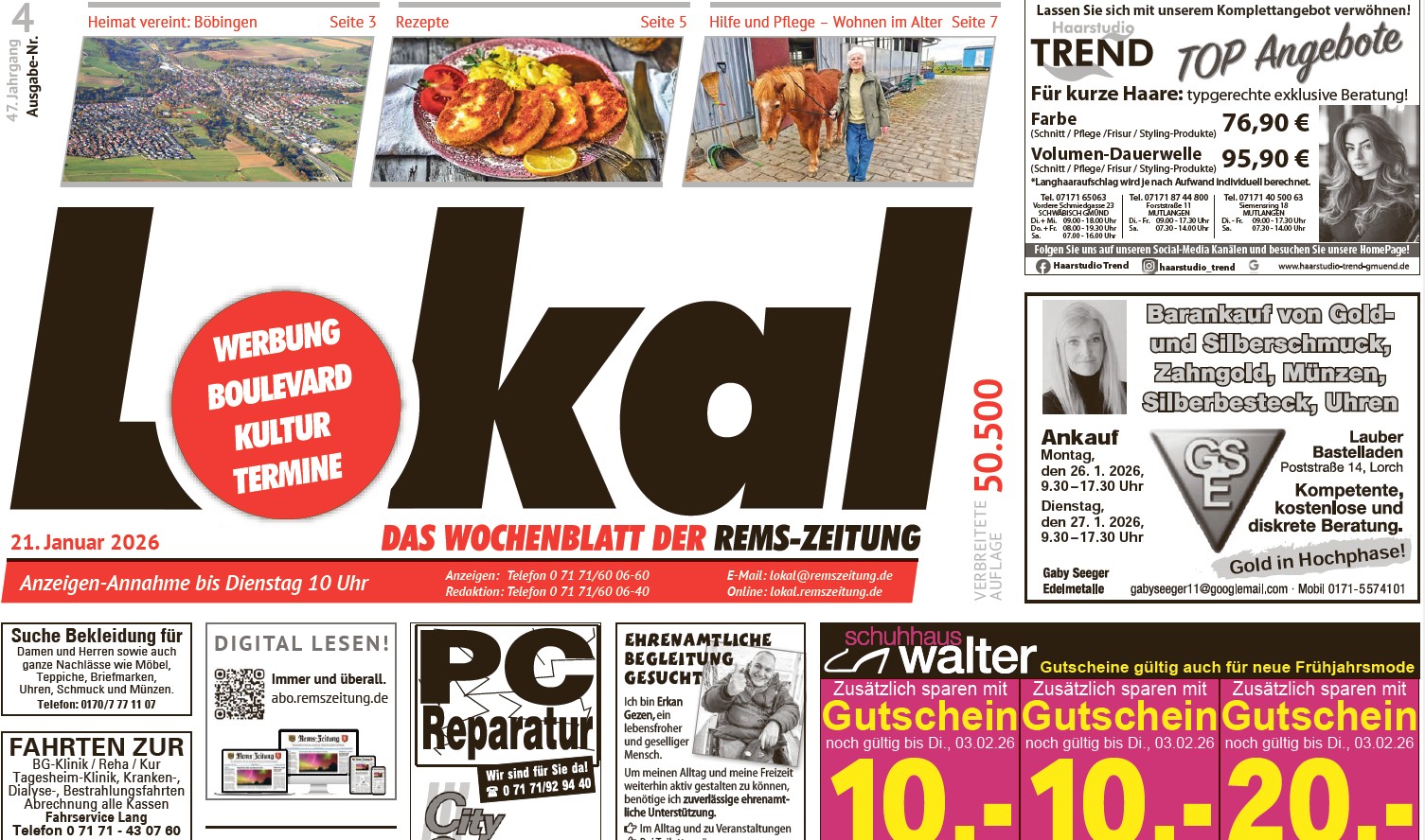 Jeden Mittwoch Lesestoff und Kleinanzeigen für die Region zwischen Wald und Alb