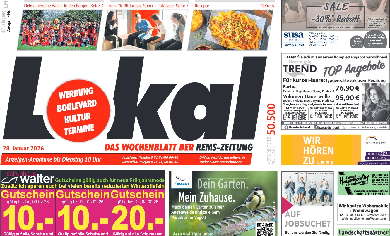 Jeden Mittwoch Lesestoff und Kleinanzeigen für die Region zwischen Wald und Alb
